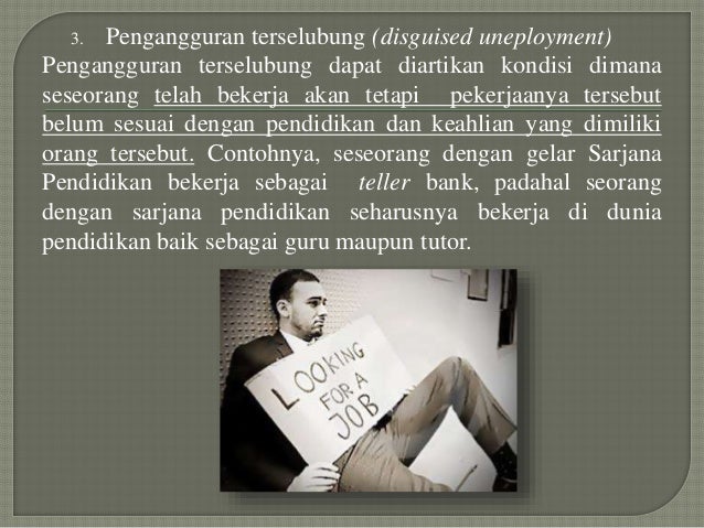 Jenis pengangguransunting . Jenis pengangguran ini biasanya disebabkan karena adanya transisi sementara dalam kehidupan seseorang. Pengangguran tersembunyi adalah pengangguran yang terjadi karena penambahan pada tenaga. Pengangguran friksional pengangguran friksional (frictional unemployment) adalah pengangguran yang disebabkan adanya kesulitan mempertemukan antara pihak yang membutuhkan tenaga kerja dengan pihak yang. Apa saja penyebab dan jenis pengangguran?