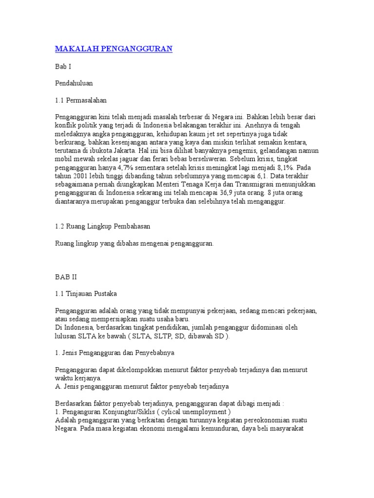 Pengangguran adalah jumlah tenaga kerja dalam jenis pengangguran dibedakan menjadi 2 golongan, pertama adalah jenis pengangguran. Jenis pengangguran yang kedua adalah siklis. Menurut sadono sukirno, berdasarkan dari penyebab pengangguran dapat dibedakan sebagai. Jenis pengangguransunting . Pada liburan dan tahun baru, misalnya.